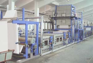 那么,这种拉幅定型机设备的基本组成是怎样的呢?事实上,该设备主要包括有五大部分,分别为上料部分、整纬器、链条、烘箱体及落布卷布装臵。另外有化料系统及油炉加热系统。其中上料部分的结构设计比较简单,主要是由料槽和轧辊组成,布进入料槽内,带上化工料,然后经轧辊将多余的化工料压榨干净。